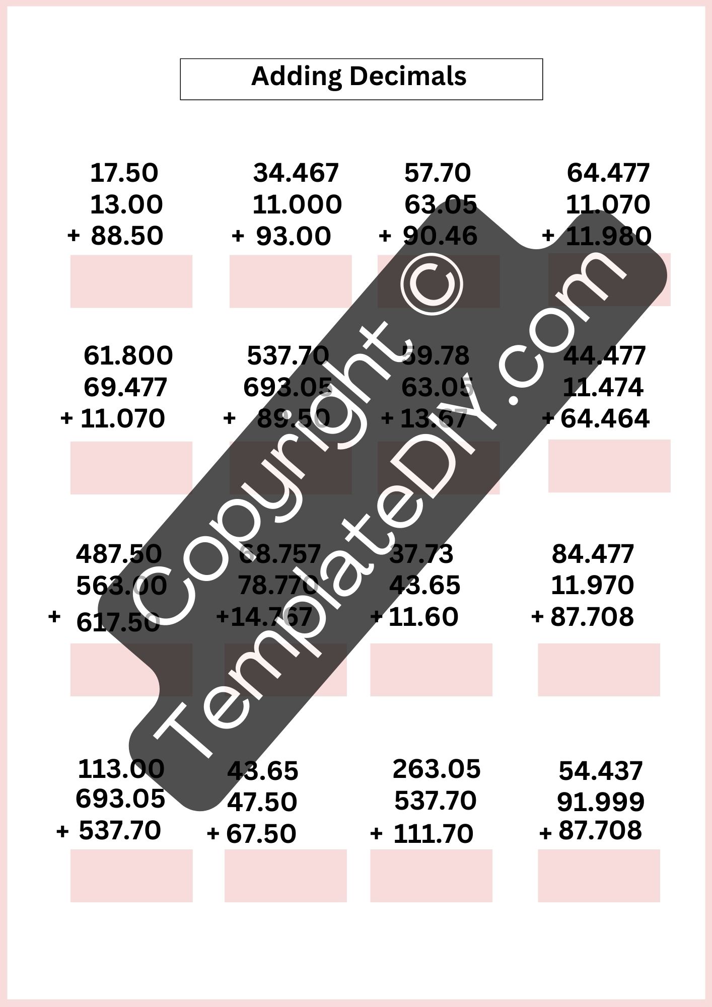 Adding decimals can seem like a daunting task, but with the right tools it can be a breeze. By using worksheets from template DIY, you can easily add them in minutes. Whether you’re working on math problems or just need to check the accuracy of your calculations, these worksheets from template DIY are a great way to get started.