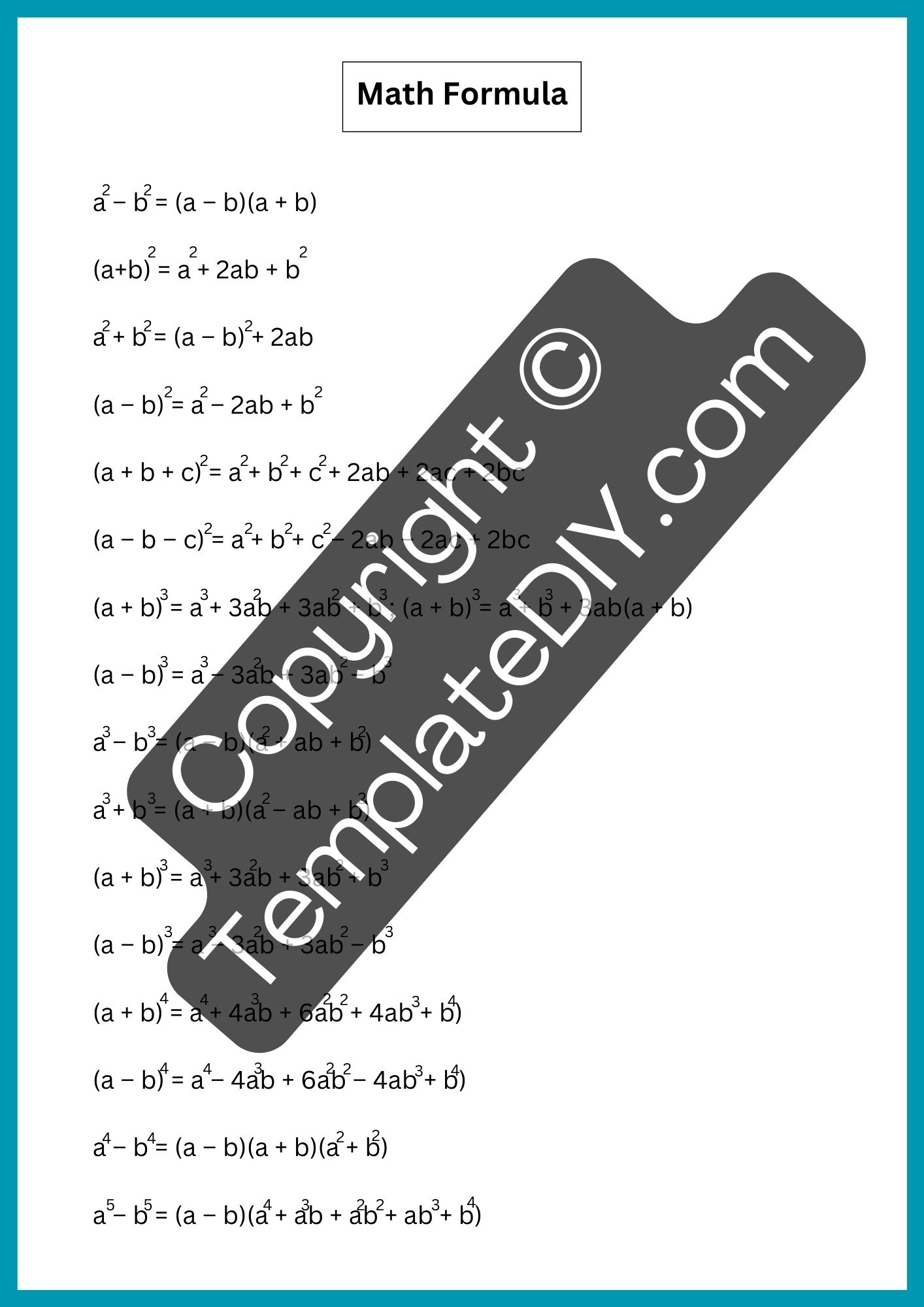 The chart of basic math formulas from templatediy can help with your homework or in class. This chart includes basic operations such as addition, subtraction, multiplication, and division. It also includes some common algebraic formulas.