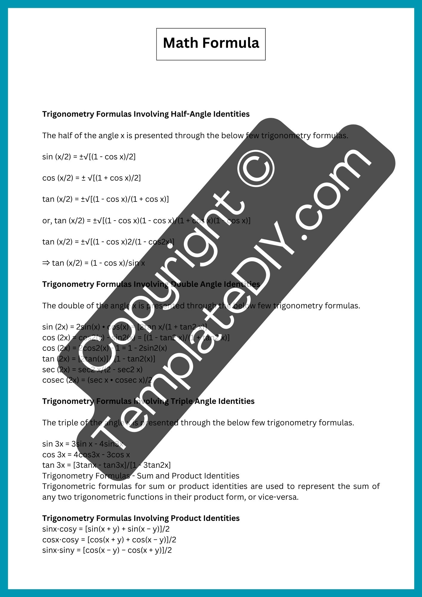 such as Basic Math Formulas Chart, geometry, trigonometry, calculus, and statistics. While there are many advanced formulas and equations, a basic math formulas chart provides a foundation that is essential for understanding the more complex ones.