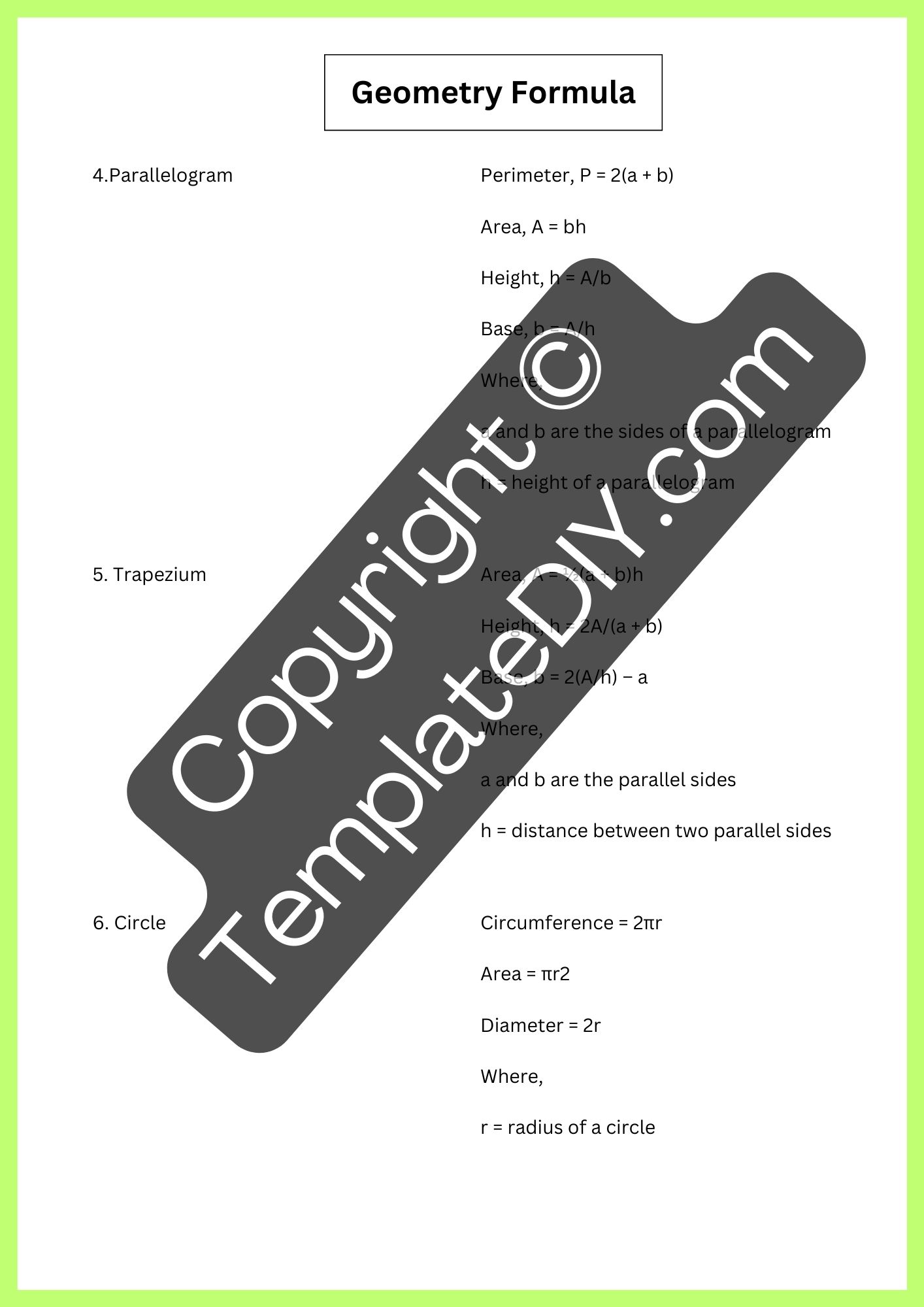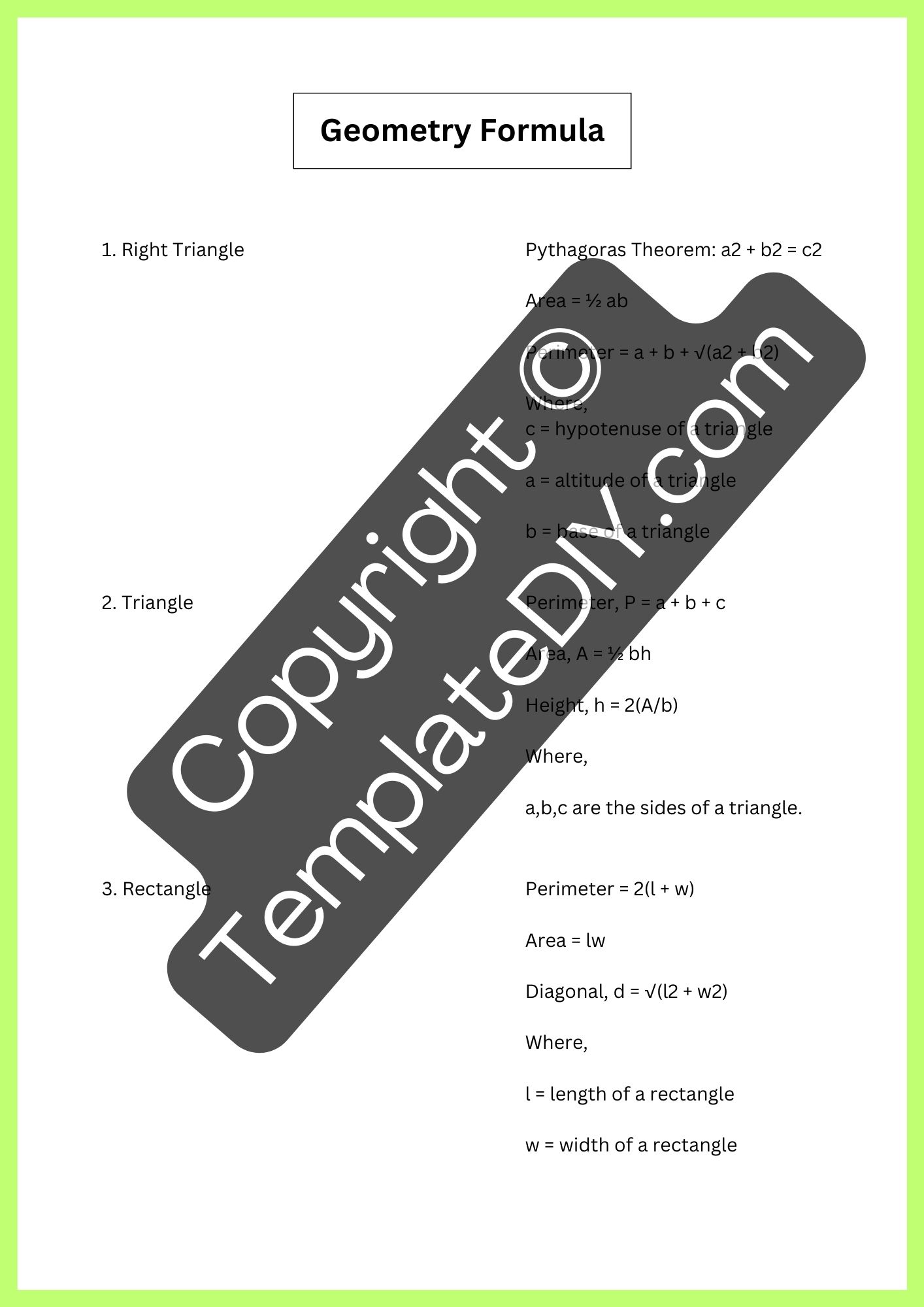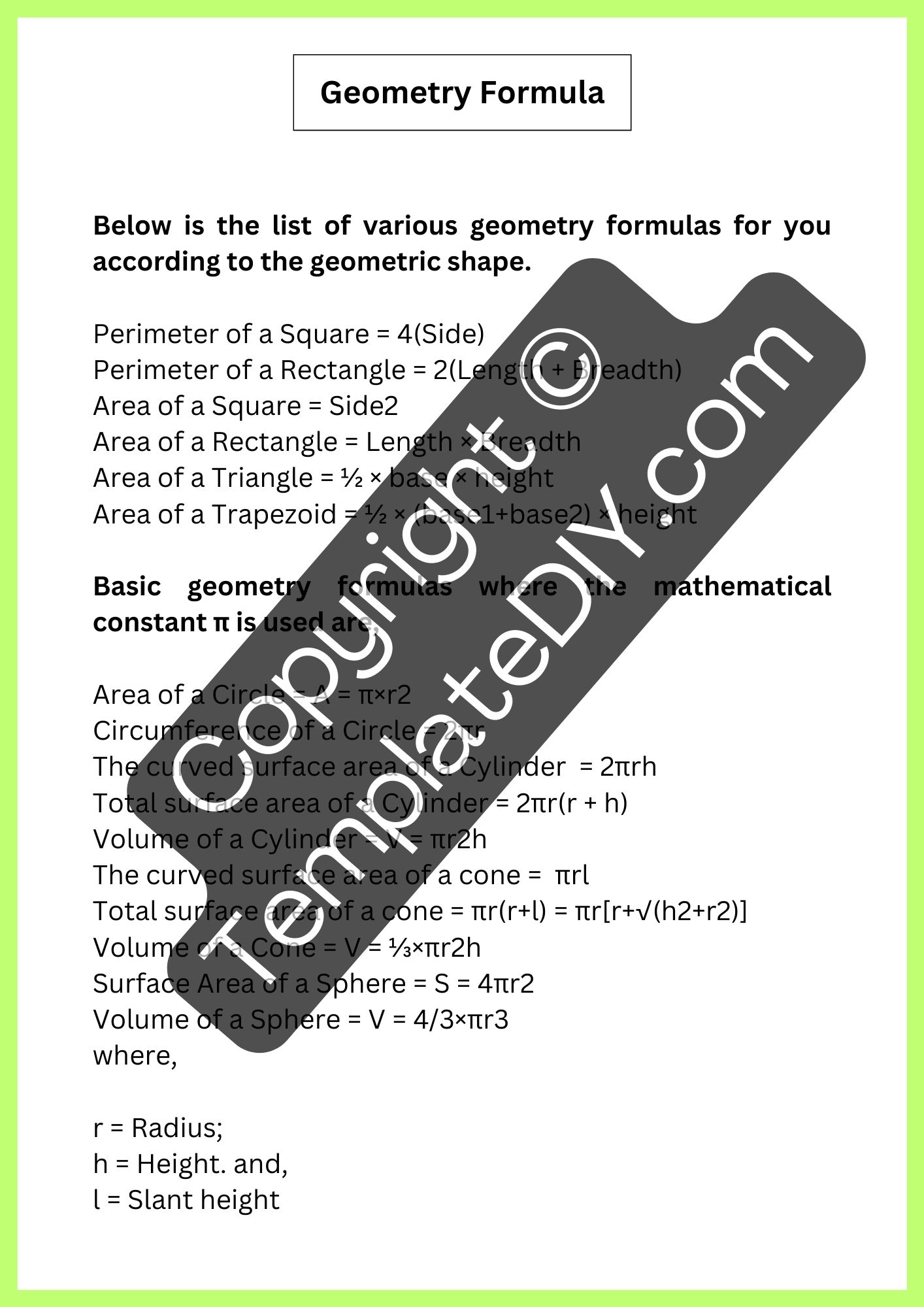 Looking for a helpful geometry math formula chart? Look no further than templatediy.com! Templatediy offers a comprehensive listing of geometry math formulas, including square roots, cube roots, and more. Whether you need help with homework or just want to brush up on your skills, templatediy has the right formula for you.