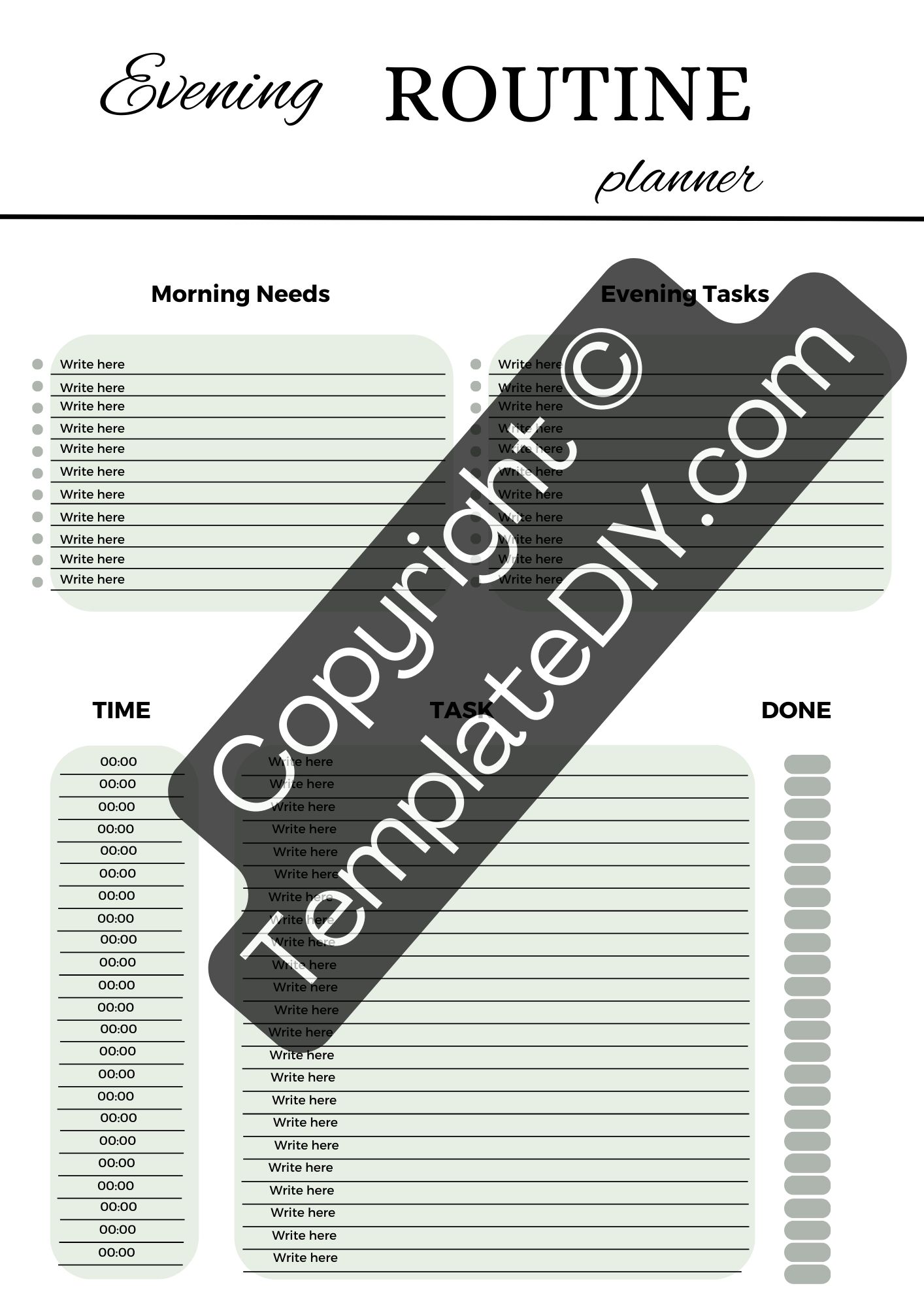 Evening Routine Planner: