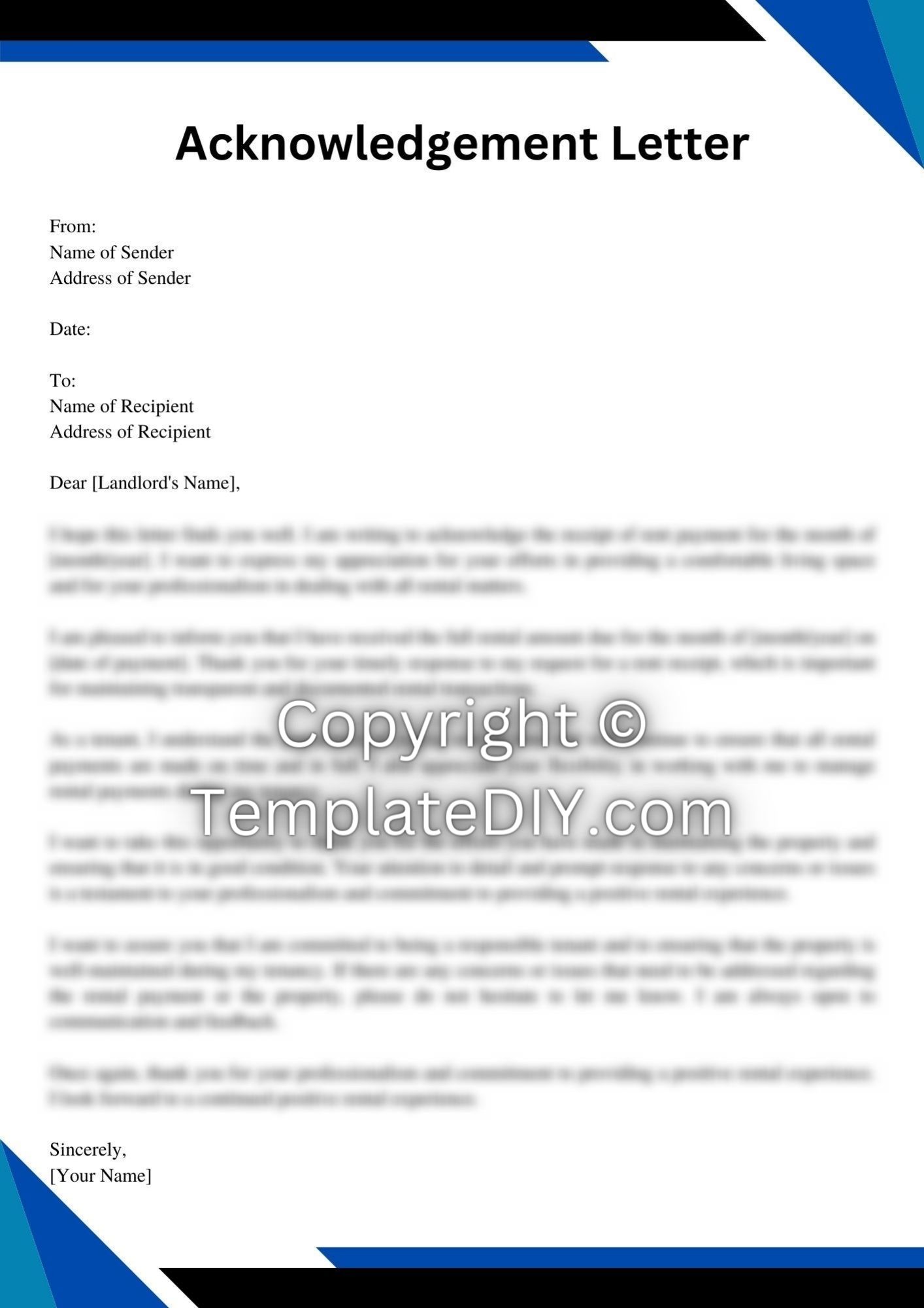 At templatediy, we offer a ready-to-use, professional-quality rent acknowledgment letter template. Designed for clarity and ease of use, our template ensures: